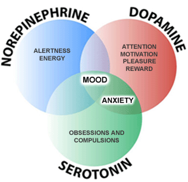 - Norepinephrine and Serotonin are involved in whole brain, Dopamine is more mid-brain-ish.